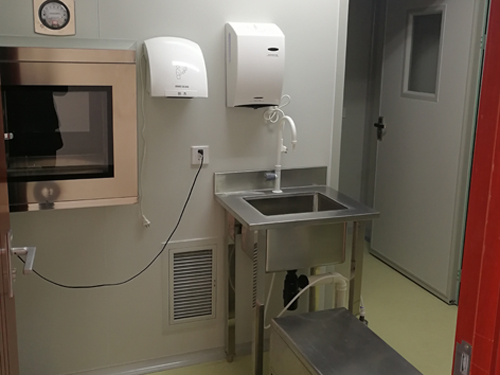 (1)無菌室應有內、外兩間,內間是無菌室,外間是緩沖室。房間容積不宜過大,以便于空氣滅菌。最小內間面積2×2.5=5m2,外間面積1×2=2m2,高以2.5m以下為宜,都應有天花板。